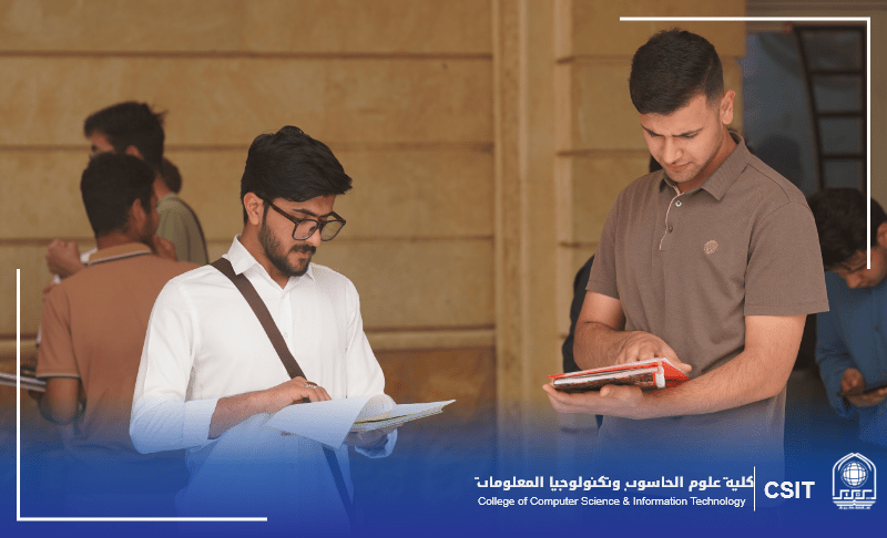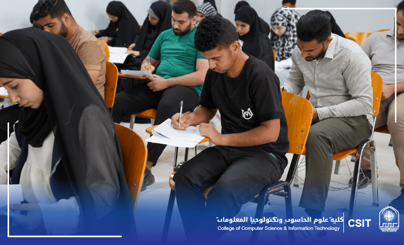 تابع السيد عميد كلية علوم الحاسوب وتكنولوجيا المعلومات، الدكتور موفق كاظم الحسناوي ، برفقة المعاون العلمي الدكتور محسن حسن حسين سير الامتحانات النهائية لطلبة الدراسة الأولية في الكلية، مؤكداً على أهمية توفير الأجواء المناسبة التي تضمن أداءً سلساً ومنظماً للطلبة.