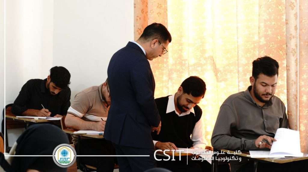 تابع السيد عميد كلية علوم الحاسوب وتكنولوجيا المعلومات في جامعة كربلاء، الدكتور موفق كاظم الحسناوي، سير الامتحانات لطلبة الدراسة الأولية (المرحلة الأولى)، وذلك في جولة ميدانية داخل القاعات الامتحانية للاطلاع على واقع أداء الطلبة وتوفير الأجواء المناسبة لهم.