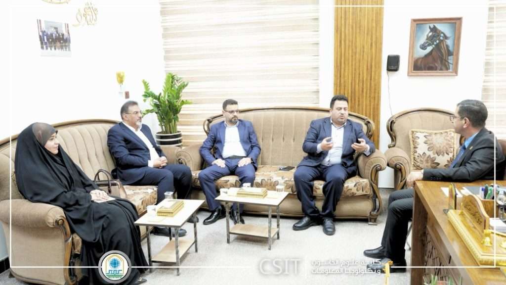 استقبل السيد عميد كلية علوم الحاسوب وتكنولوجيا المعلومات في جامعة كربلاء، الأستاذ الدكتور موفق كاظم الحسناوي، وفد نقابة المبرمجين العراقيين في مكتبه، في زيارةٍ تهدف إلى تعزيز آفاق التعاون المشترك بين الجانبين في المجالات العلمية والتقنية.