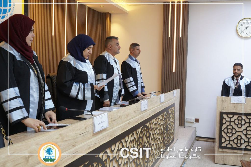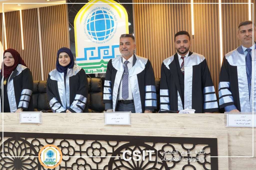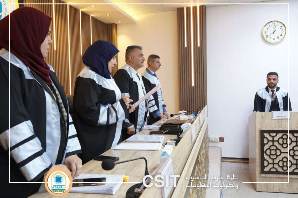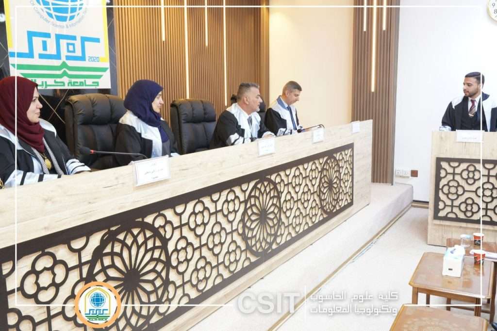 تقدم بها طالب الماجستير (حسين فاضل محسن ) وذلك في الساعة التاسعة والنصف صباح يوم الخميس الموافق 18 / 12 / 2025 إذ جرت المناقشة على قاعة الخوارزمي في عمادة كلية علوم الحاسوب وتكنولوجيا المعلومات بحضور السيد العميد الدكتور موفق كاظم الحسناوي وعدد من الباحثين والتدريسيين.