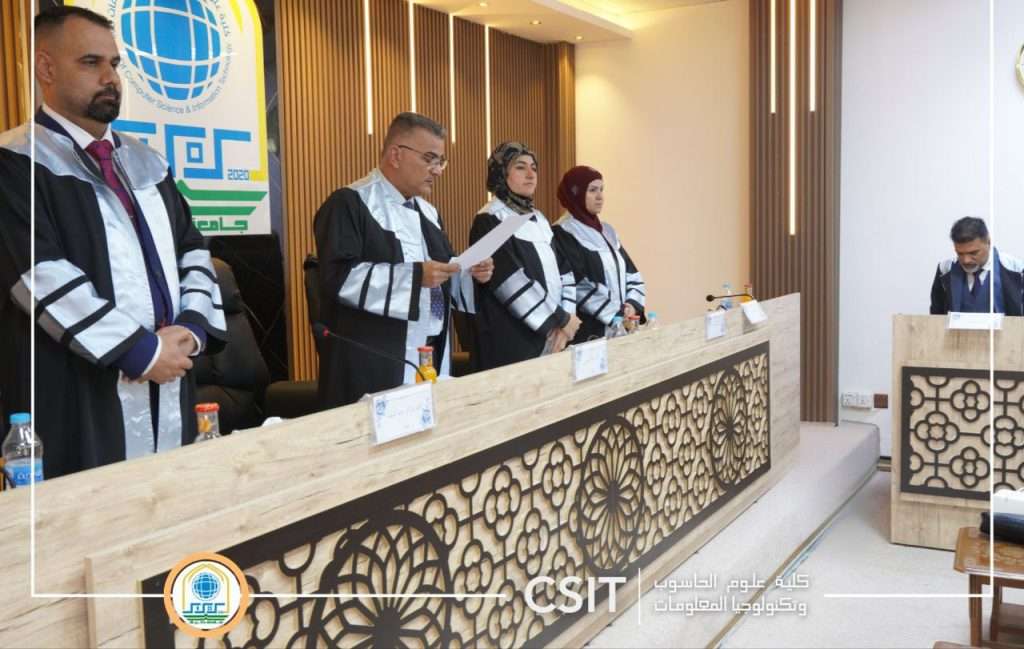 تقدم بها طالب الماجستير (صفاء حميد كريم ) وذلك في الساعة التاسعة والنصف صباح يوم الأثنين الموافق 9/ 2 /2026 إذ جرت المناقشة على قاعة الخوارزمي في عمادة كلية علوم الحاسوب وتكنولوجيا المعلومات بحضور السيد العميد الدكتور موفق كاظم الحسناوي وعدد من الباحثين والتدريسيين.
