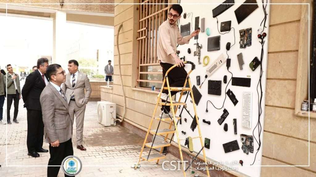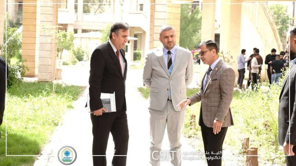 The Dean of the College of Computer Science and Information Technology, prof. dr Muwaffaq Kadhom Al-Hassnawi, accompanied by the Administrative Assistant, Asst.prof.dr Dr. Muhannad Kamil Abdulhameed, and the Head of the Computer Science Department, Asst.prof.dr Issam Hamed Abbas, conducted an inspection tour across the college’s corridors and surrounding facilities to review the progress of work.