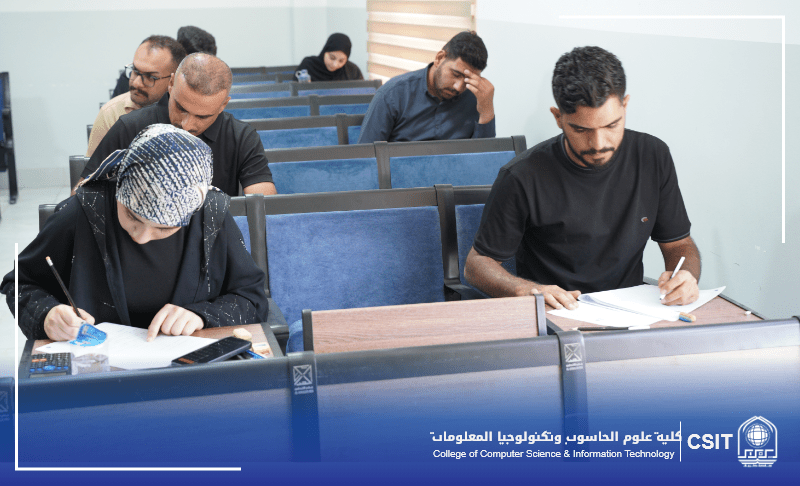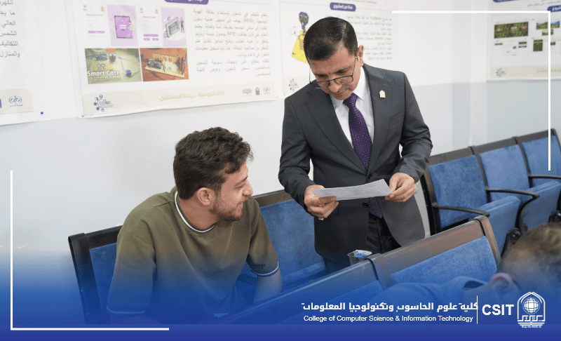 In a step aimed at monitoring the progress of the examination process and ensuring a suitable environment for students, the Dean of the College of Computer Science and Information Technology, Dr. Mowafaq Kazem Al-Hasnawi, accompanied by the Head of the Department of Computer Science, Dr. Issam Hamed Abbas, conducted an inspection tour of the College during the undergraduate second-round examinations.