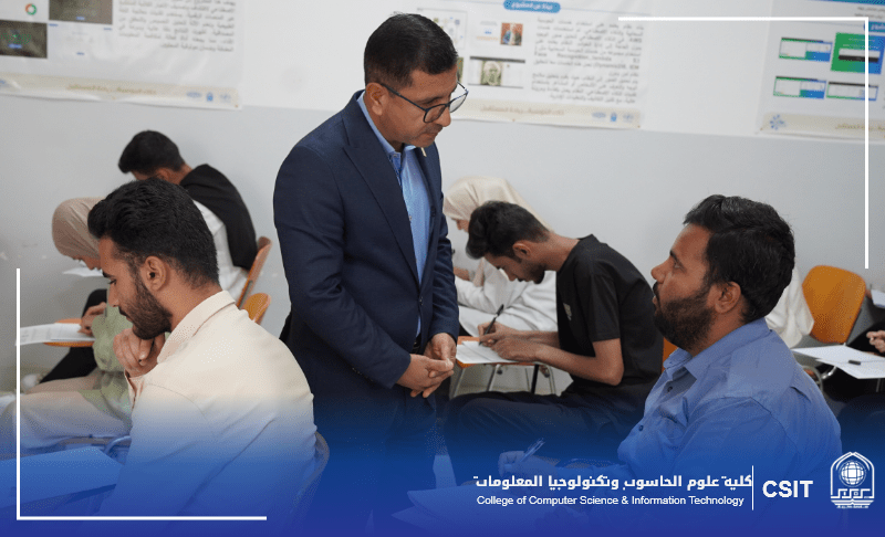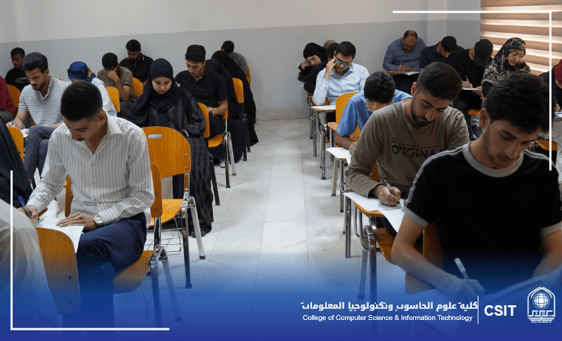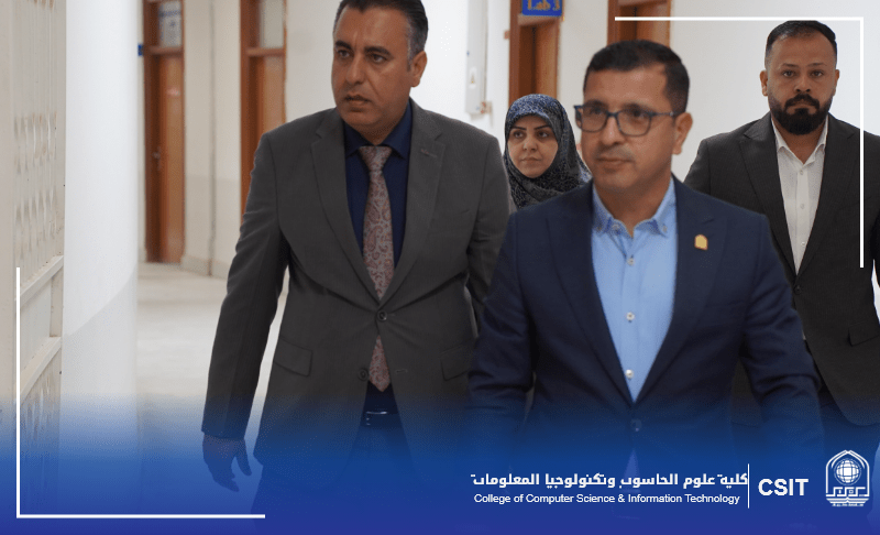 Dr. Mowafaq Kazem Al-Hasnawi, Dean of the College of Computer Science and Information Technology, conducted a follow-up visit on the morning of Sunday, May 11, 2025, to monitor the progress of the final examinations for undergraduate students in the college. He emphasized the importance of providing a suitable environment that ensures a smooth and orderly exam process for students.