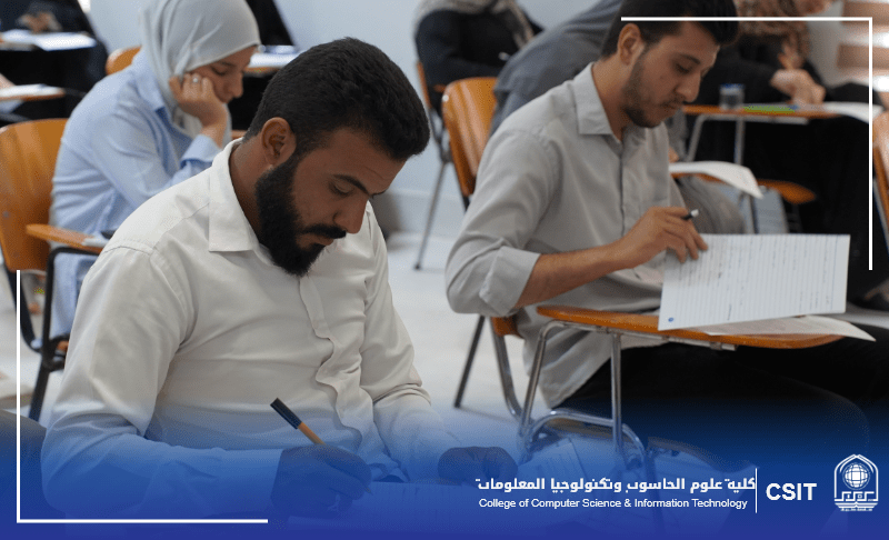 Dr. Mowaffaq Kazem Al-Hasnawi, Dean of the College of Computer Science and Information Technology, accompanied by Dr. Mohsen Hassan Hussein, the Assistant Dean for Scientific Affairs, visited the college to check on the progress of the final exams for undergraduate students. He stressed the importance of creating a suitable environment to ensure exams run smoothly and efficiently.