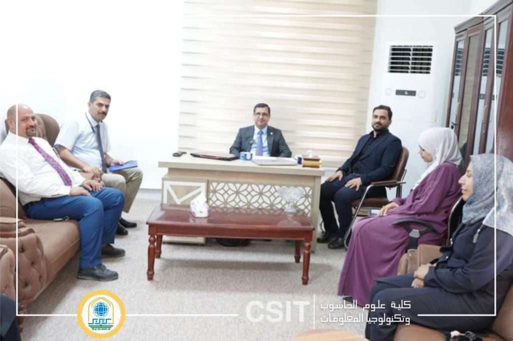 The Dean of the College of Computer Science and Information Technology, Dr. Mowaffaq Kadhem Al-Hasnawi, held a meeting with the faculty and staff of the Cybersecurity Department, in the presence of the Head of Department, Dr. Mustafa Abdul-Rasool, along with a distinguished group of academic staff and employees.