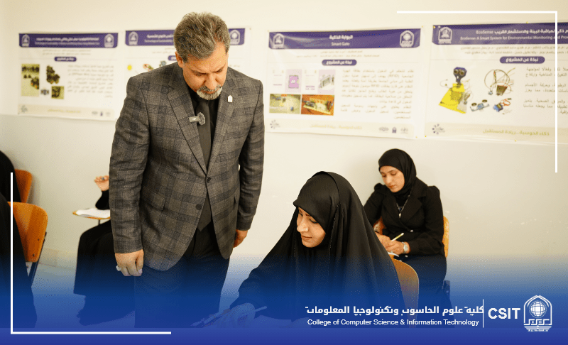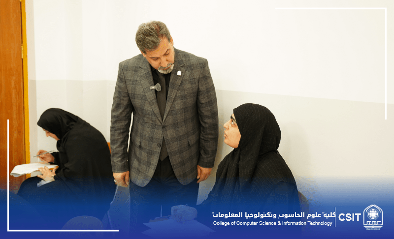 On the morning of Monday, June 30, 2025, the respected President of the University of Karbala, Professor Dr. Sabah Wajid Ali, paid a visit to the College of Computer Science and Information Technology to observe firsthand the competitive examination for applicants to graduate studies for the academic year 2024–2025.